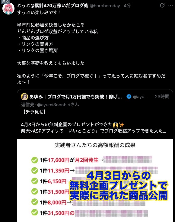 ■3人の子供を育てているワーママ ■兵庫県出身■カフェオレが大好き■インドア派の引きこもりだからパソコン1台で自立できるようになりたい!と奮闘中! ■2018年第二子出産を機に猛烈な不安に襲われて、会社に依存しないような生き方を模索■2019年にワードプレスってなんぞや?というところからスタート。■なかなか収益が発生しない中悶々とする■やっと2020年12月に1万円超え!■その後色々と苦労しながらも月に10万以上は稼げるようになりました!