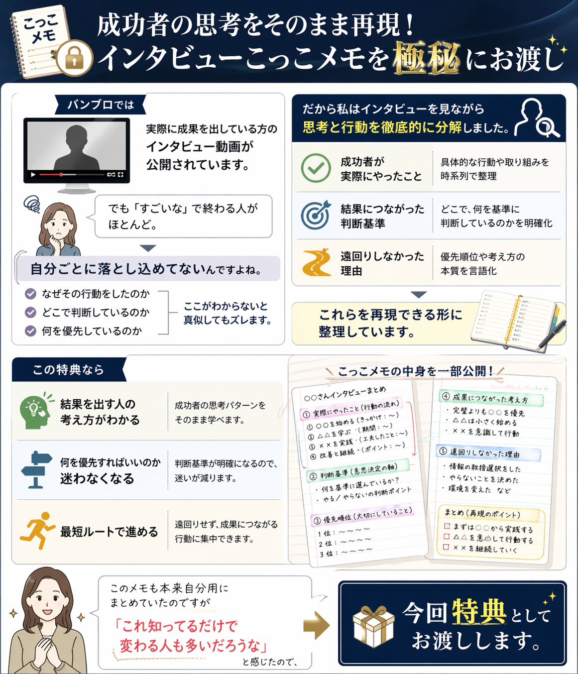 私はバンブロの勉強会に参加しながらこっこが実際に参加して、後から自分のブログに実践していきたいから、絶対見返したい!と強烈に感じて書き綴っていた㊙こっこメモをそのままお渡しします。